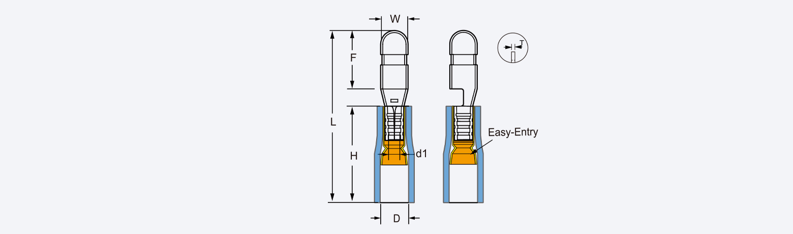 HMPHTD2-156 | 4.0 | 9.0 | 31 | 20 | 2.4 | 5.8 | 0.4 | 500 | ● Blue | HX-30J1 | End material: Brass Insulation material: PVC Wire range:1.5-2.5mm² Max.current=15A A.W.G:(16-14) Max temperature resistance: 105℃ |