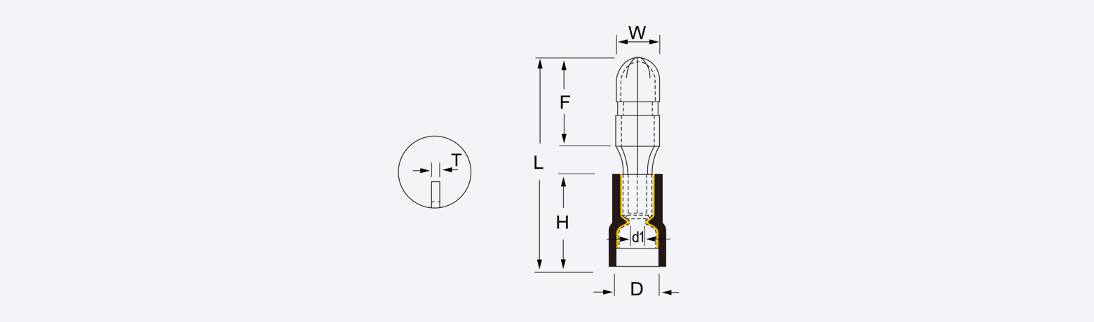 HMPVD5.5-195 | 5.0 | 9.0 | 24.0 | 13.0 | 3.5 | 6.2 | 0.4 | 500 | ● Yellow | HX-30J1 | End material: Brass Insulation material: PVC with copper sheath Wire range:4-6mm² A.W.G:(12-10) Max.current=24A Max temperature resistance: 75℃ |