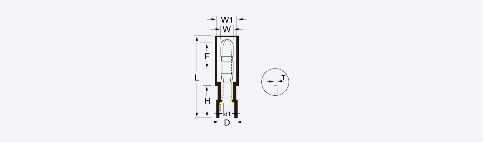 HMPFNYD1.25-156 | 4.0 | 7.4 | 9.0 | 27.0 | 10.0 | 1.8 | 4.0 | 0.4 | 500 | ● Red | HX-30J | End material: Brass Insulation material: PA66 with copper sheath Wire range:0.5-1.5mm² A.W.G:(22-16) Max.current=10A Max temperature resistance: 105℃ |