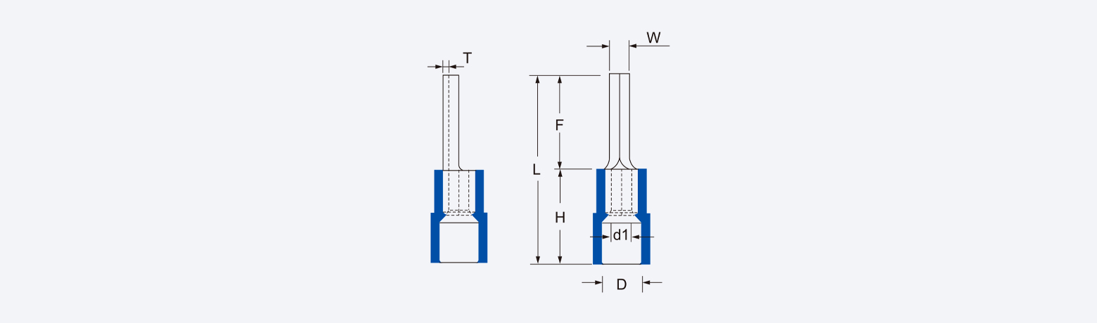 HPTNY2-10 | 1.9 | 10.0 | 21.0 | 11.0 | 2.4 | 4.8 | 0.8 | 1000 | ● Blue | HX-30J | End material: Purple copper Insulation material: PA66 Max temperature resistance: 75℃ Wire range:1.5-2.5mm² A.W.G.:(16-14) Max.current=27A |