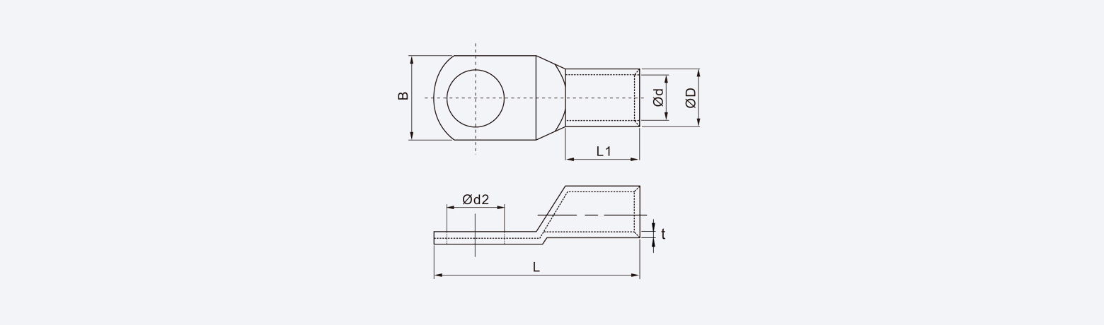 TLK16-5 | 5.3 | 12 | 31.5 | 8.5 | 5.5 | 13 | 1.5 | End material: Purple copper Wire range:16mm² A.W.G.:6 Max.current=95A | ||