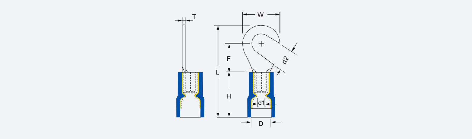 Vinyl-insulated double crimp hook tongue terminals